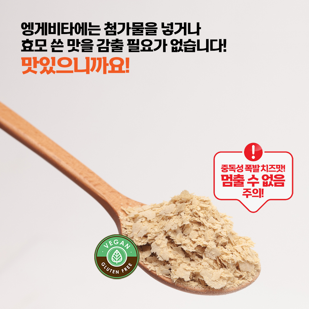 영양효모의 영양학적 가치는 높이고, 풍미 가득한 맛으로 그냥 섭취가 가능합니다. 당밀에서 배양한 영양효모는 고소하고 풍미 가득한 견과류 치즈맛으로 그냥 먹어도 맛있다는 장점이 있습니다.
